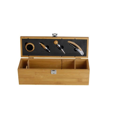 Estojo em bambu para 1 garrafa com 4 acessórios