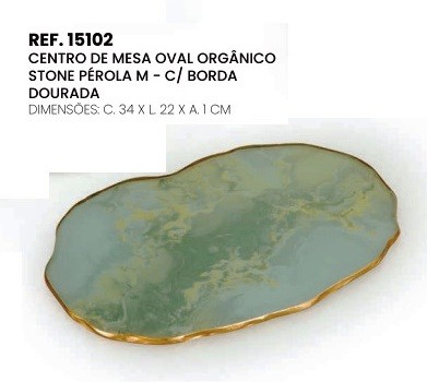 15102 CENTRO DE MESA OVAL ORGANICO STONE PEROLA M - C/ BORDA DOURADA