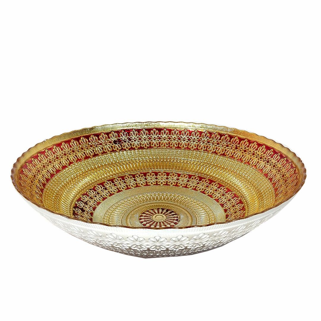 3789 CENTRO DE MESA DE VIDRO ANCARA VERMELHO 33X33X9CM