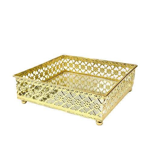 CG-009-002 BANDEJA DOURADA EM METAL C/ ESPELHO 27X19X5 CM
