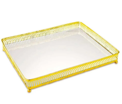 6548 BANDEJA ESPELHADA DOURADA METAL