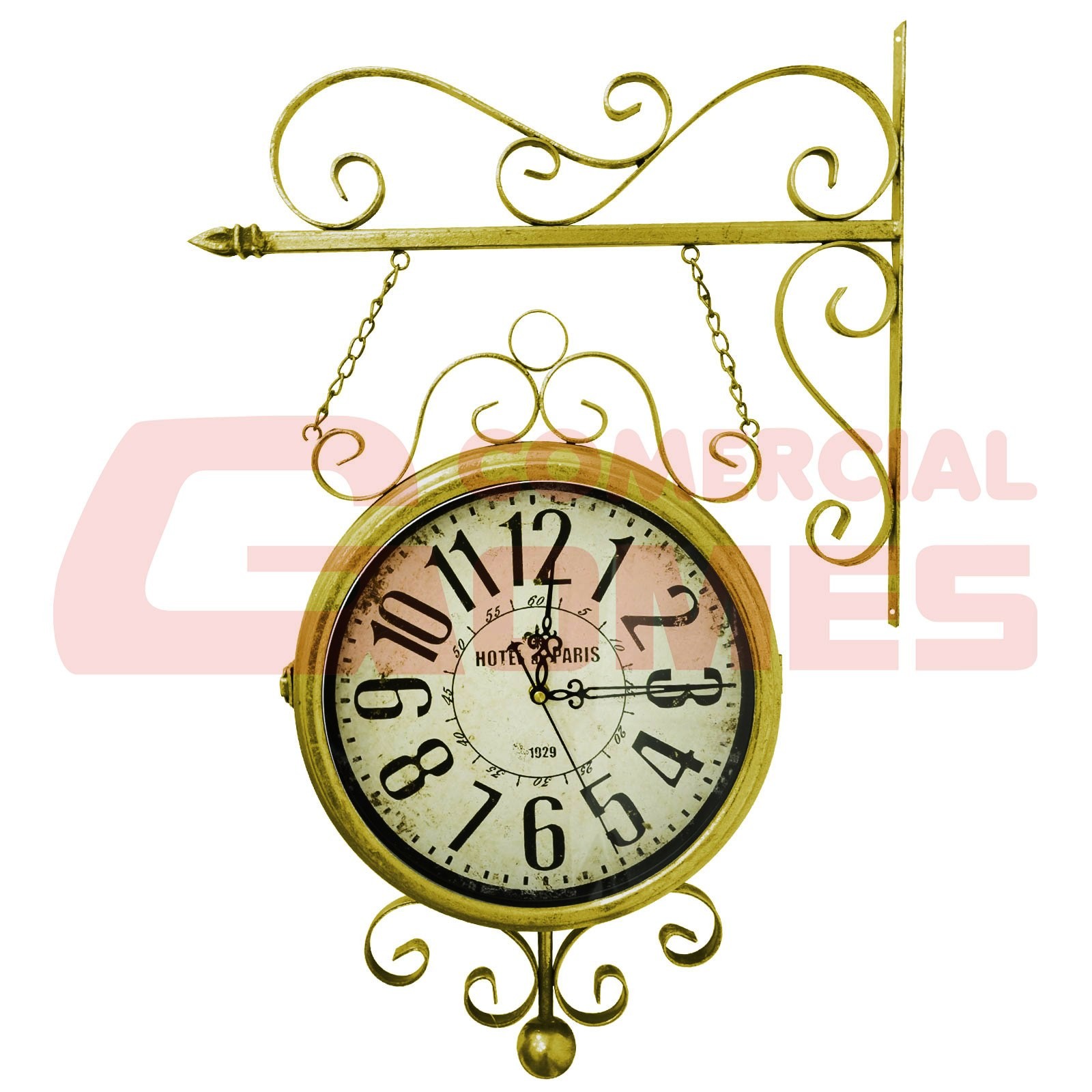 Relógio de estação Hotel Paris dourado 35 cm.