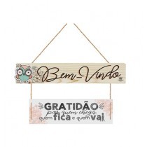 P17845 MÓBILE DE PAREDE CRU COM APLIQUE BEM-VINDO...GRATIDÃO 13X26,5