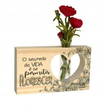 P18931 PLACA DE MESA VAZADA CRU COM TUBETE E FLORES O SEGREDO DA VIDA Ã SE PERMITIR...12X16X3