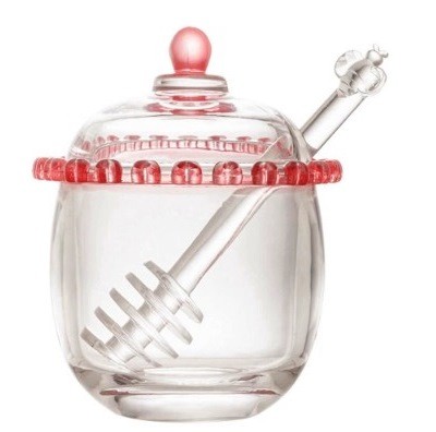1757 MELEIRA CRISTAL DE CHUMBO C/PEGADOR CORACAO BORDA ROSA 9,5x12cm