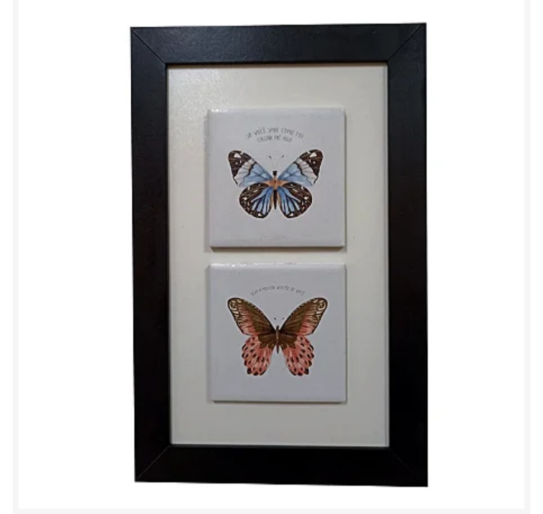 3002-015 QUADRO DEC 2 AZULEJOS DUPLA BORBOLETAS 18,5X31,5CM