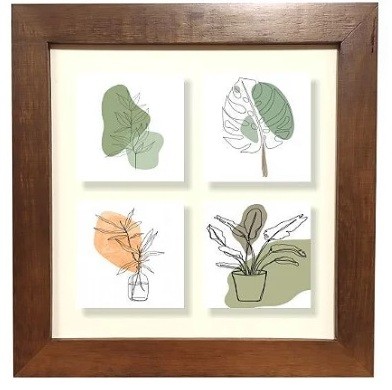 3004m-018 quadro dec madeira c/4 az folha simplista 31,5x31,5cm
