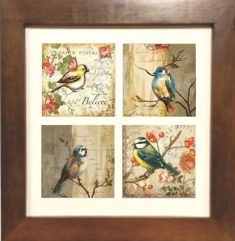 3004m-020 quadro dec madeira c/4 az pássaros 31,5x31,5cm