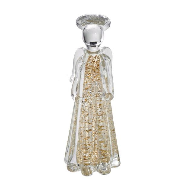 Escultura Decorativa Em Vidro Nas Cores Dourado e Transparente