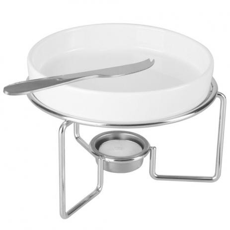 26373 CJ 3PC RECHAUD P/QUEIJO BRIE DE CERAMICA C/FACA DE ACO INOX E SUPORTE NIQUELADO