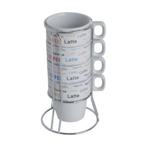 30368 CJ. 4 XICARAS DE CAFE DE PORCELANA 220ml FLAVORS C/ SUPORTE