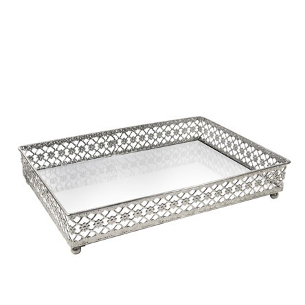 CG-009-001 BANDEJA METAL PRATA FLOWER ESPELHADA 27X19X5 CM