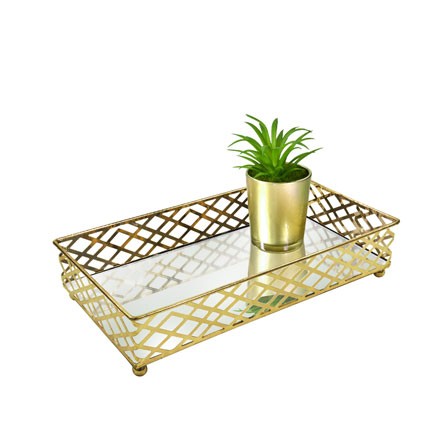 CG-009-078 BANDEJA METAL DOURADO SQUARES ESPELHADA 24X13X05 CM