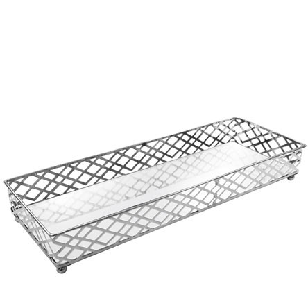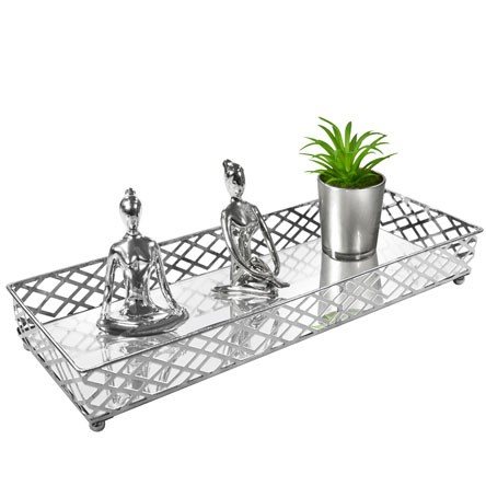 CG-009-079 BANDEJA METAL PRATA SQUARES ESPELHADA 35X13X05 CM