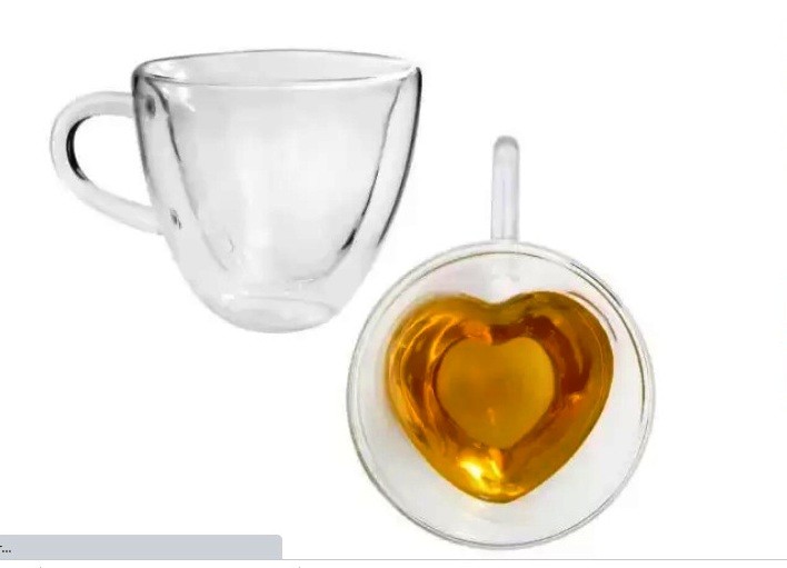 1375 CJ 2 XICARAS P/CHA DUPLA PAREDE DE VIDRO BOROSSILICATO RESISTENTE A CALOR HEART 230ml